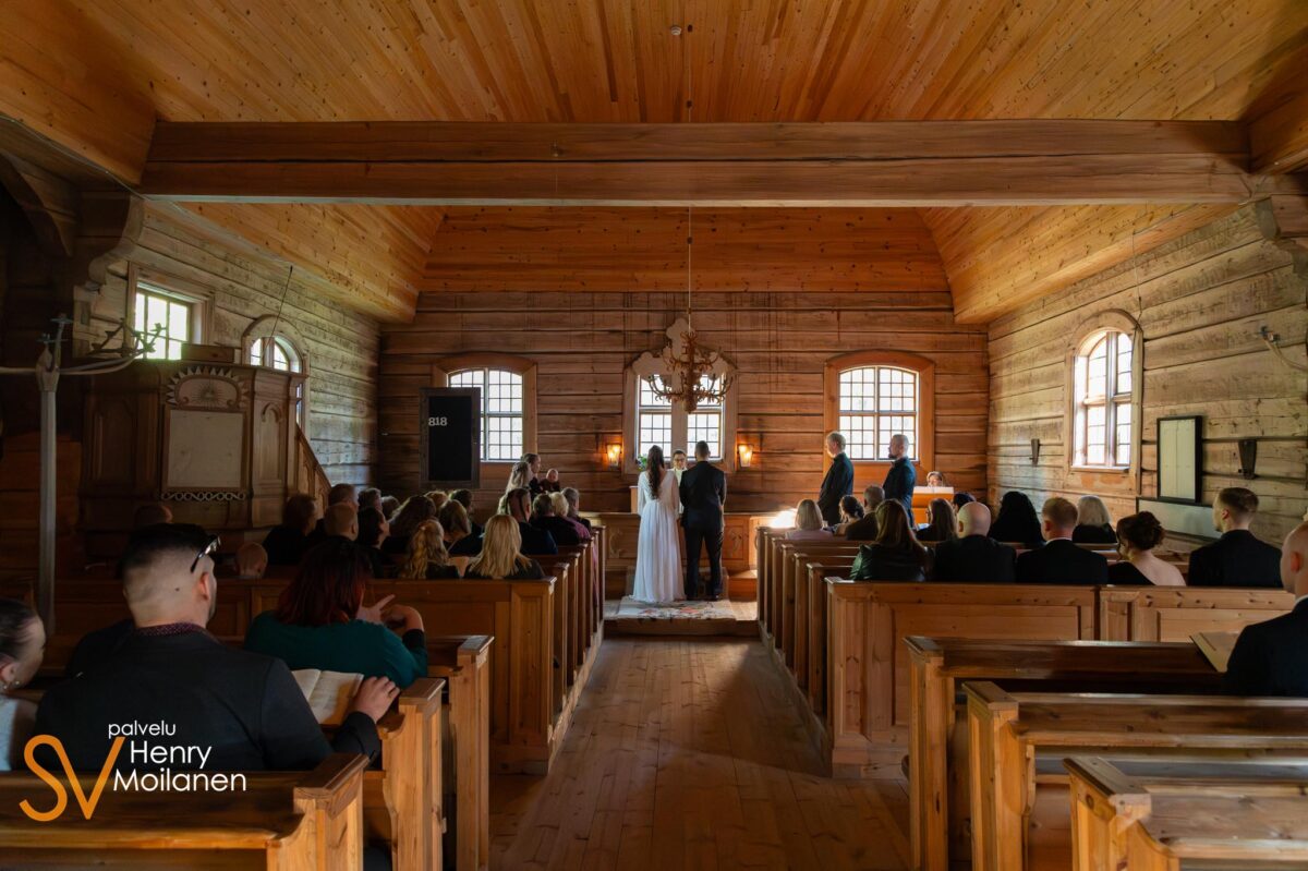 Hääpäivän kuvaus aloitettiin vihkimisella Pihlajaveden erämaakirkossa. Kirkko on pieni, maanläheinen ja tunnelmallinen puukirkko. Hieman ahdas kuvaajan kuvata, mutta tunnelmaltaan idyllinen.