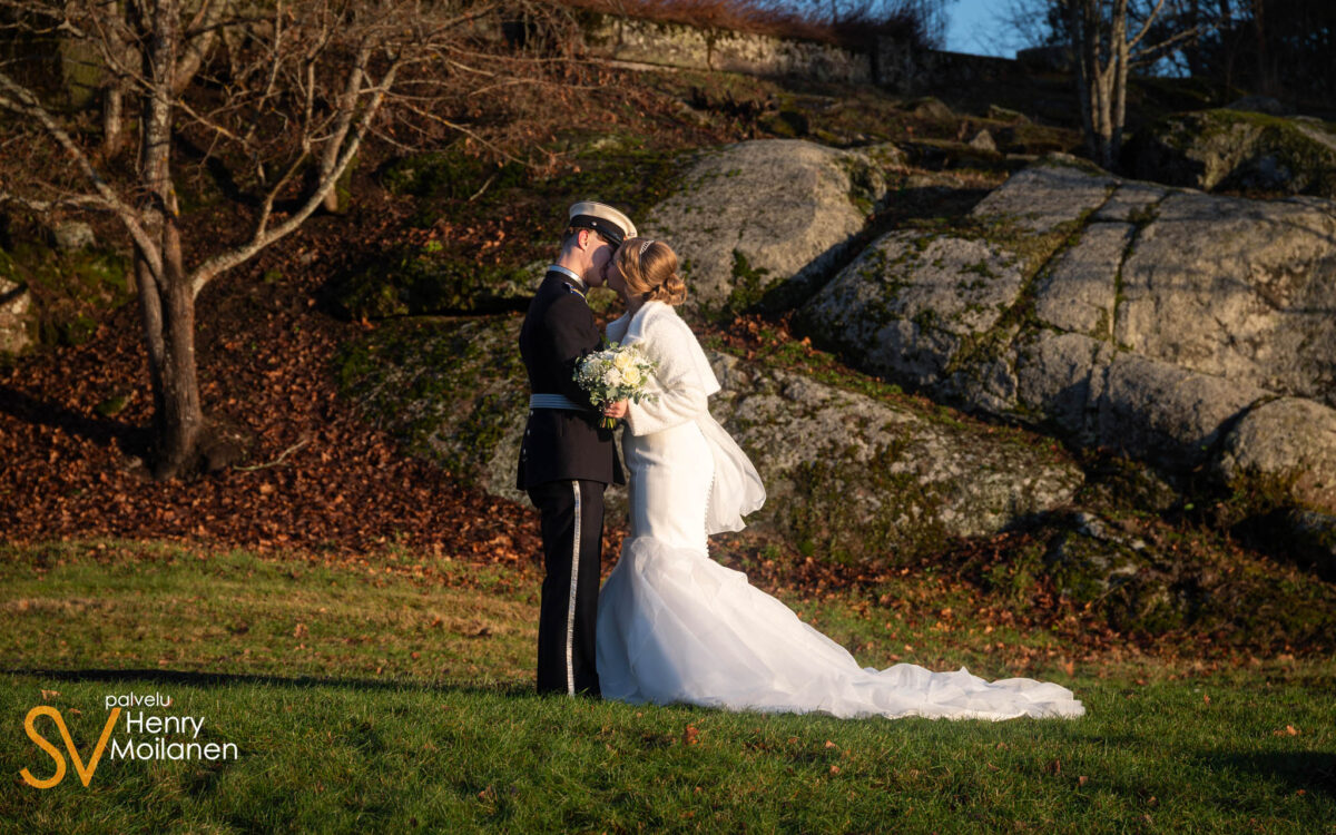 Vaarunhovi loi upeat puitteet potrettikuvaukselle. Miljööstä löytyy viljapeltoa, rantaa ja koivikkoa. Hääparilla ei ollut etukäteen toiveita, mutta viljapellolta aloitimme, kun kerta sitä läheltä löytyi. Perusposeerausten lisäksi parilta löytyi leikkisyyttä omannäköisiin kuviin. Lopuksi siirryimme Vaarunhovin pihanurmelle ottamaan lähikuvia. Auringon laskiessa kuvasimme vielä siluettimaisia suutelukuvia.